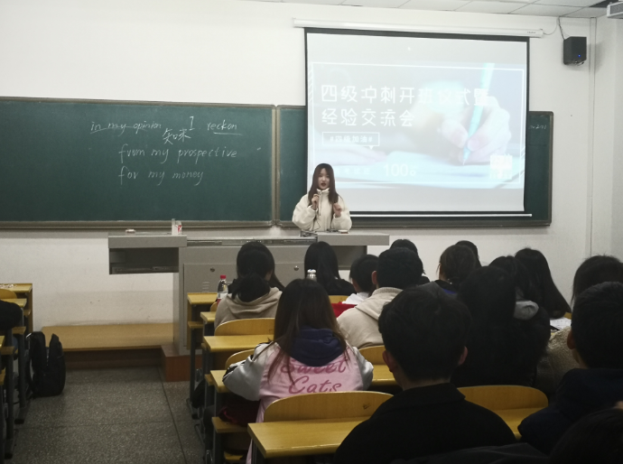 开展养成教育的号召,院学生会学习部开展为期百天的英语四级冲刺班。于3月20日在北湖校区主楼1730教室举行了开班仪式暨学习交流会,开班仪式特邀2018级辅导员哈那提别克·米乃老师主持。
