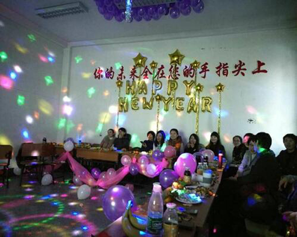 办公室、各个系为单位准备节目,联欢开始由韩明友院长发表节日祝词,对全院教职工一年的辛勤工作与努力付出表示欣慰与肯定。教师们准备的歌曲、舞蹈、相声、配音、诗朗诵使整个活动高潮迭起,掌声如雷。主持人幽默风趣,活动中还穿插踩气球、猜成语等趣味小游戏,使老师们彻底放松了身心。活动最后由杨景伟书记发表了结束感言,对精彩纷呈的节目提出嘉奖,对全院教职工送去新年的寄语与祝福。