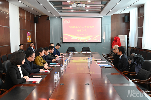 70周年校庆来临之际,我院2000级校友、北极星防务科技有限公司董事长刘洋为学校捐资140万元建设“北极星”人工智能教室、购买AI智能应用软件。11月16日,学校在南湖校区主楼二楼会议室举行“北极星”人工智能教室捐建仪式。