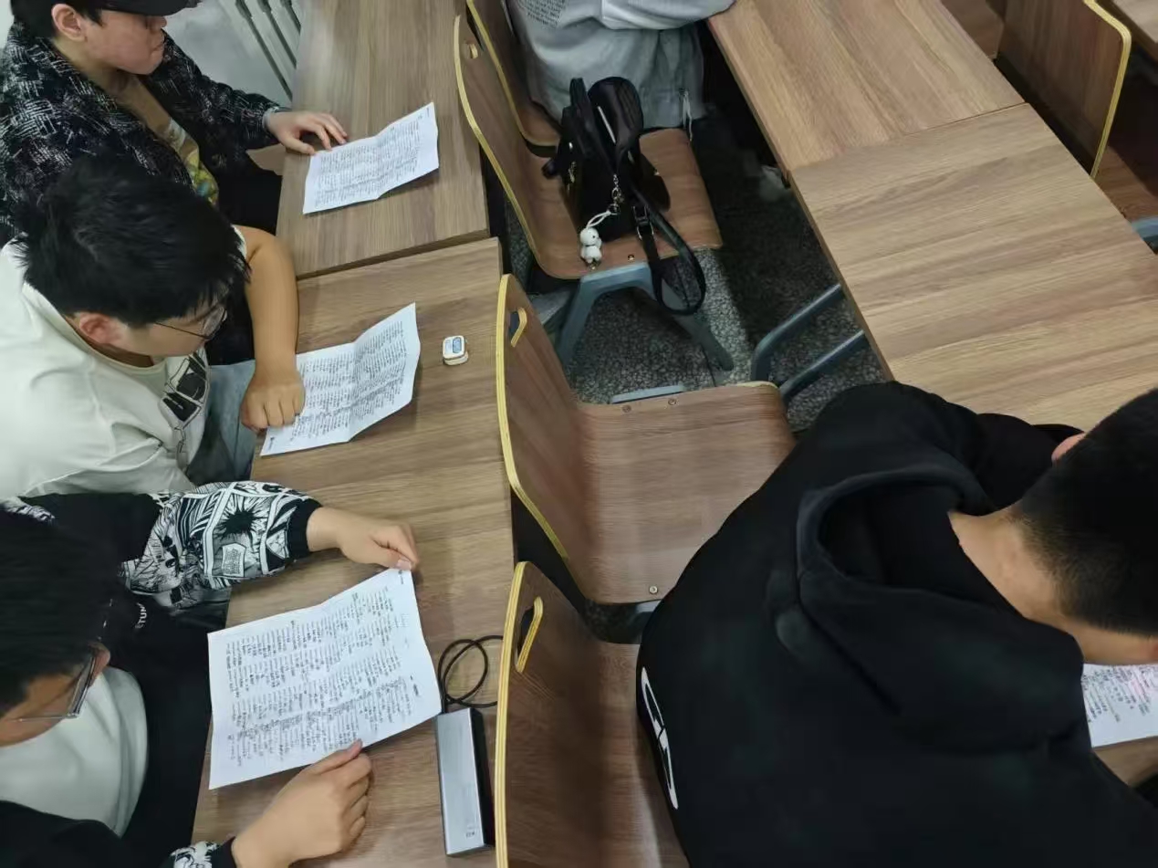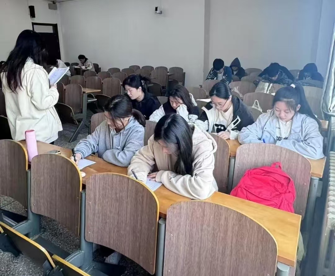 2.英语能力强化:早自习设置了英语晨读和听写单词环节,同学们围绕四六级单词和英语课本进行学习,小组长带领大家练习口语发音,纠正连读技巧;听写单词后,小组内部成员互相批改,形成“互助式”学习模式。