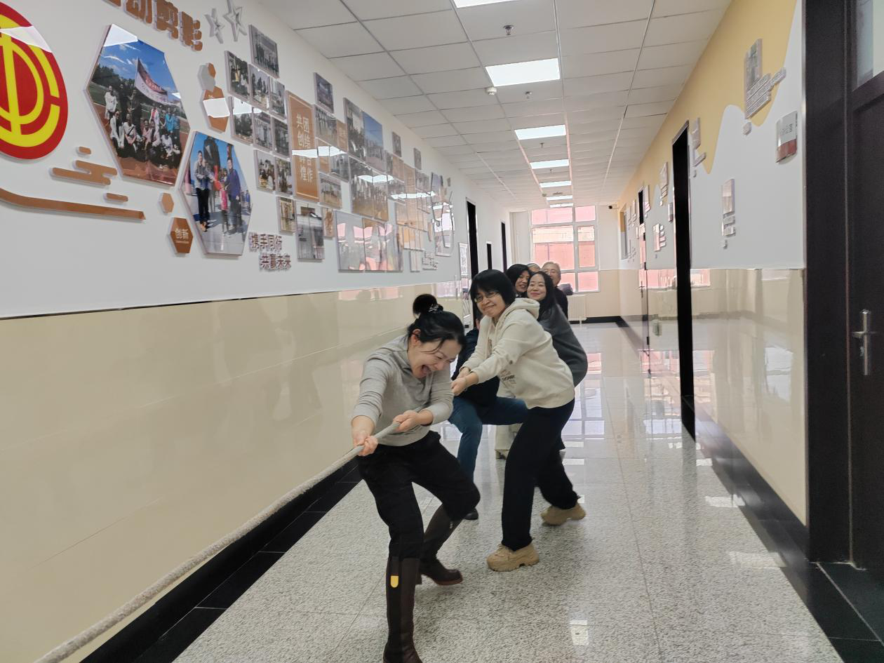 网讯(通讯员 陈辛妮)2025年12月12日下午13:00,主楼4楼走廊气氛热烈,一场以“同心拉紧协作绳,并肩奋进‘十五五’”为主题的教职工拔河交流赛在此举办。各系教职工踊跃报名、积极参与,在赛场之上以绳为媒凝聚合力,以赛会友共话担当。