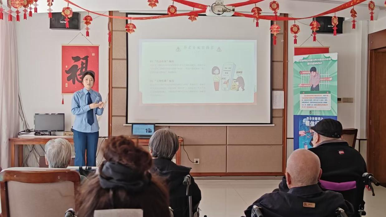 法学系“银龄反诈”团队走进绿园区南阳社区辖区内的温馨老年服务中心,以面对面、接地气的方式,为辖区老年朋友送上一场贴心实用的防诈骗宣讲,把安全知识与法治关怀送到老人身边。