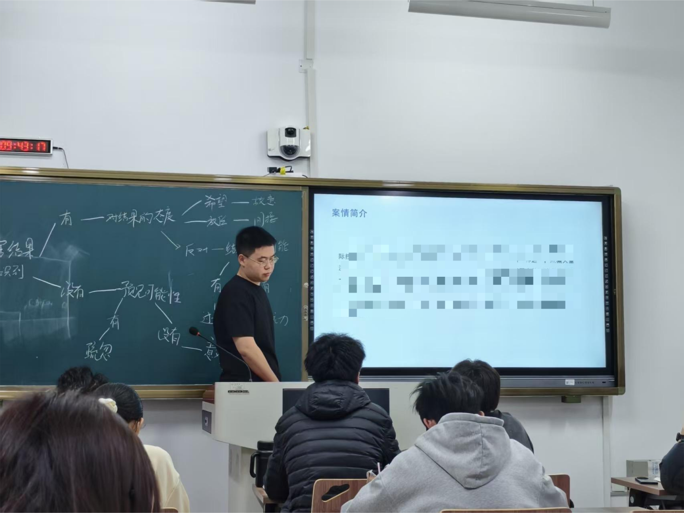 在本科生刑法课堂,刘宇律师以自己代理的一起涉黑案件为切入点,将刑法总则中“故意”与“过失”概念,通过行为人的主观心态、客观环境及证据链条层层建构,让理论从法条走入现实。