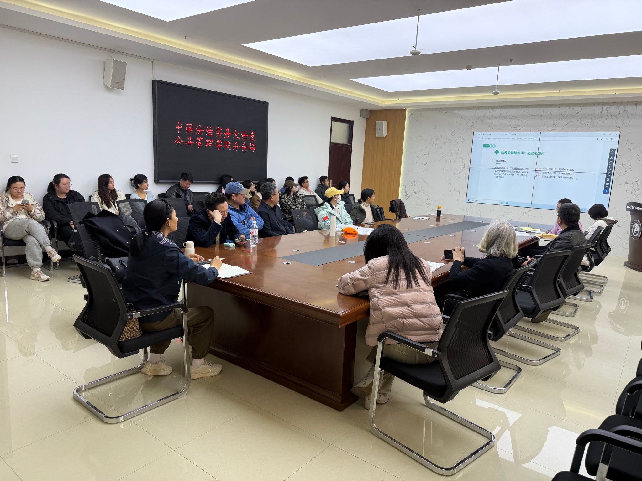 组织法学系教师与部分研究生集中收看中国法治实务大讲堂第七讲。本次讲座聚焦生态环境法典内容解读。