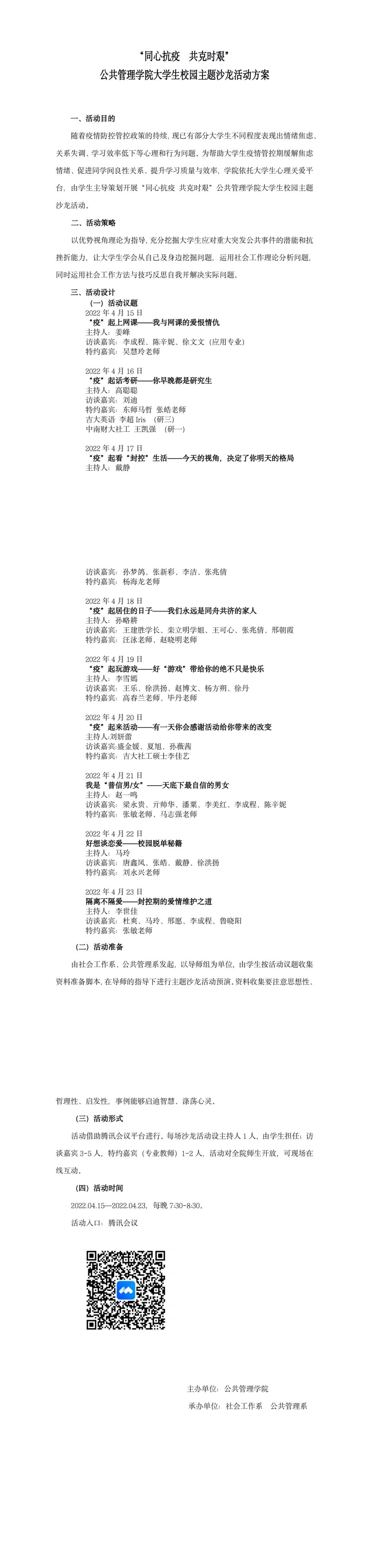 “同心抗疫 共克时艰”--pg电子 大学生校园主题沙龙活动方案